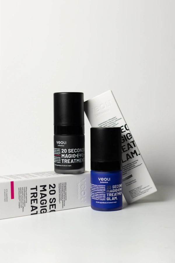 Liftingująco-naprawcze, transformujące serum pod oczy i na powieki z kofeiną, peptydami, kwasem hialuronowym i kompleksem Beautifeye™ 20 SECONDS MAGIC EYE TREATMENT to kultowe serum, które zapewnia natychmiastowy efekt liftingu, redukcję cieni i worków pod oczami, głębokie nawilżenie i regenerację. Idealne, jako finalny krok rytuału pielęgnacyjnego skóry wokół oczu. Z kolei 20 SECONDS MAGIC EYE TREATMENT GLAM – rozświetlająca wersja bestsellera oferuje wszystkie powyższe efekty, ale także spektakularny glow! Formuła zawiera perłowe mikropigmenty, które subtelnie rozświetlają okolicę wokół oczu, przywracając spojrzeniu zdrowy blask.