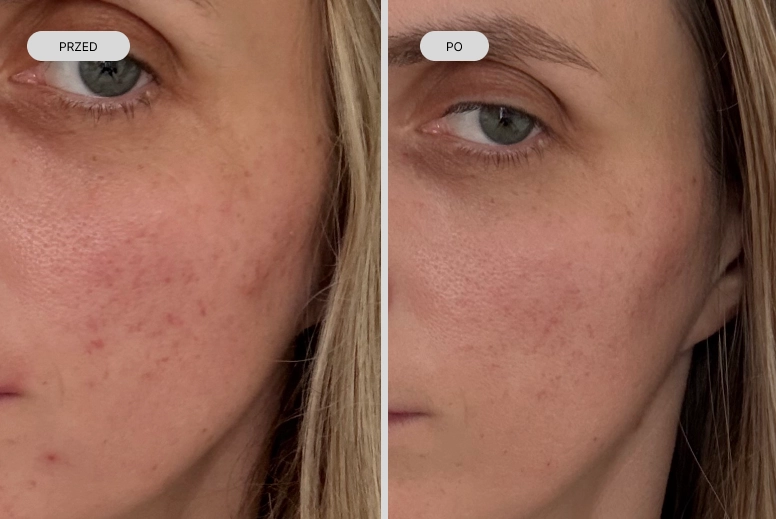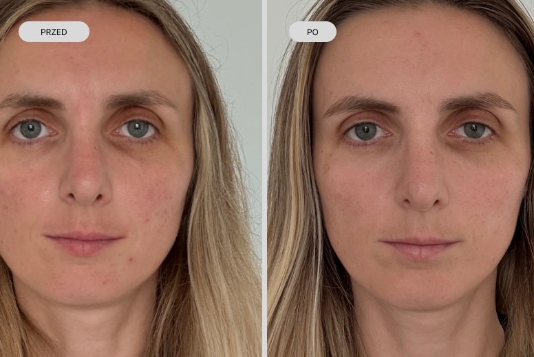 Ale po miesiącu nowej pielęgnacji czuję ogromną różnicę! Skóra jest spokojna, gładka, a rumień prawie zniknął. W końcu czuję się dobrze i pewnie bez makijażu!