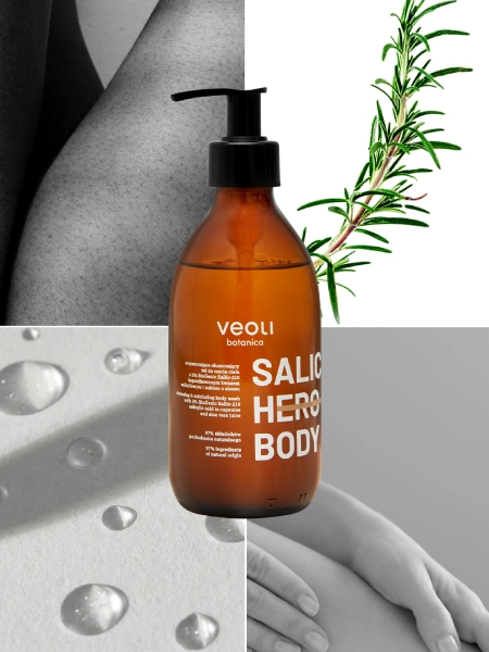 Aby skutecznie zmniejszyć objawy trądziku na ciele, warto sięgnąć po delikatne, ale skuteczne produkty oczyszczające zawierające np. kwas salicylowy (BHA), niacynamid lub cynk. Idealnym przykładem jest złuszczający żel do mycia ciała SALIC HERO BODY, który łączy kapsułkowany kwas salicylowy z łagodzącymi składnikami jak aloes czy ekstrakt z brzozy.