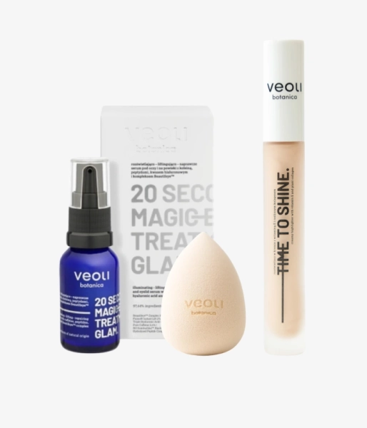 ❝ Ten zestaw to absolutny must-have, jeśli chcesz szybko nadać twarzy świeżości i blasku! Serum działa jak zastrzyk energii dla skóry wokół oczu, redukując oznaki zmęczenia i nadając spojrzeniu promienności. Kremowy rozświetlacz TIME TO SHINE idealnie się rozprowadza i wygląda jak tafla wody na skórze – subtelnie, ale efektownie. Gąbka BLEND THE PERFECTION sprawia, że aplikacja jest niezwykle łatwa, a efekt idealnie gładki. Idealne trio dla tych, którzy chcą wyglądać świeżo i promiennie w kilka sekund! ❞